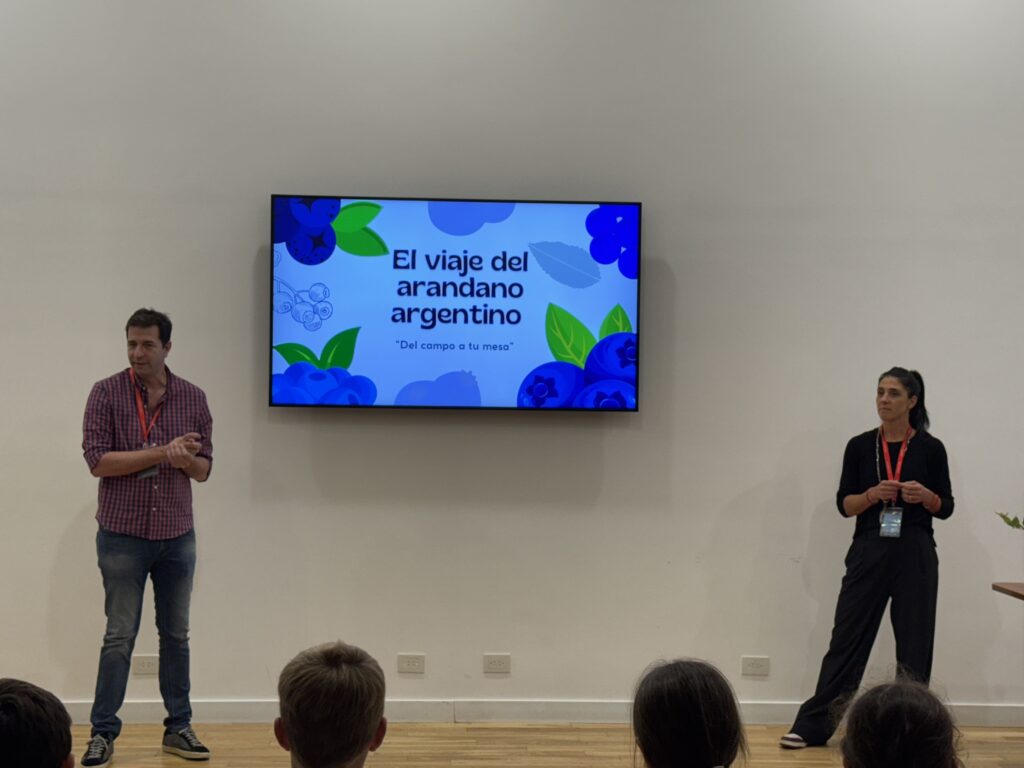 Gracias a su experiencia en la producción de arándanos en Argentina, los chicos conocieron de primera mano cada etapa del recorrido de esta fruta, desde el cultivo y la cosecha hasta el empaquetado y la distribución. Comprendieron el trabajo colaborativo, los recursos y el cuidado que se requieren para que llegue a nuestras mesas.