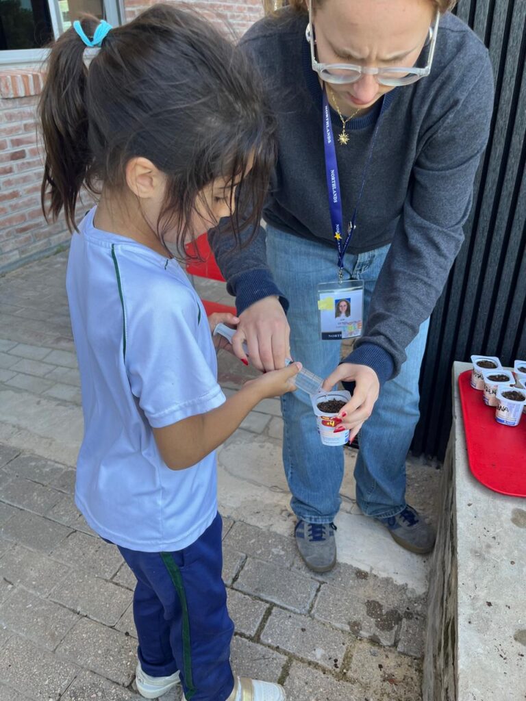 The Year 1 students, as part of the transdisciplinary unit “Sharing the Planet”, created their own seedbeds, small trays or containers where they planted seeds to later water, care for, and transplant into the school garden. Every day, they take care of watering and observing their plants, recording the changes and learning about care, responsibility, and the life cycle in nature.