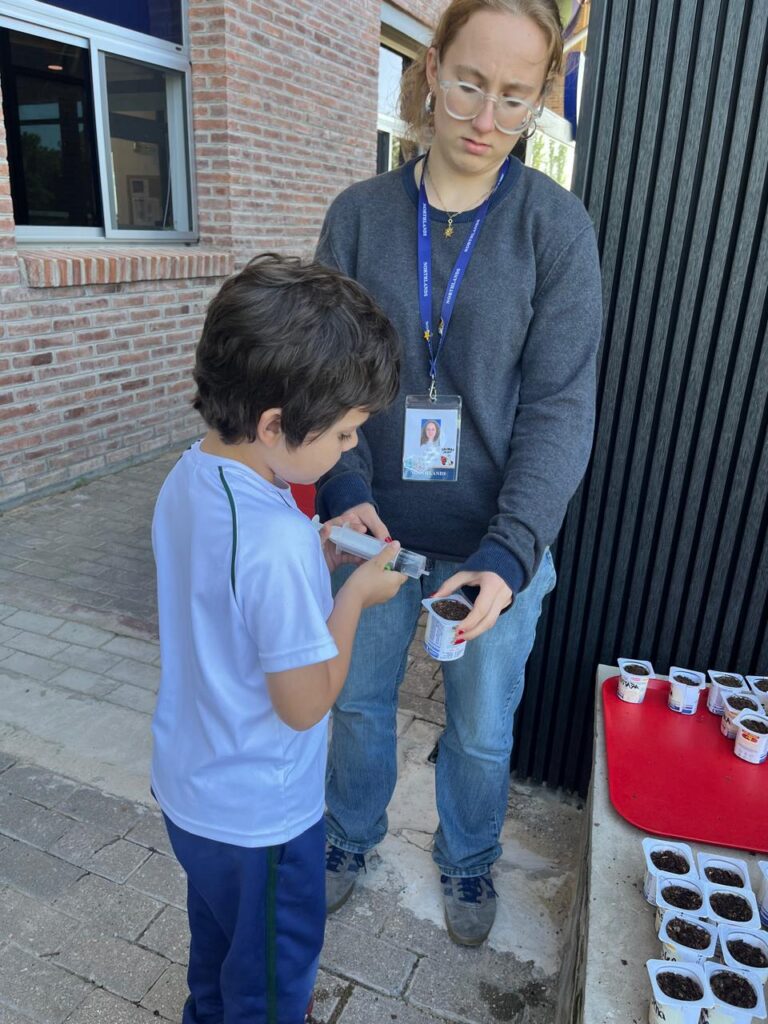 Los alumnos de Year 1, dentro de la unidad transversal “Cómo compartimos el planeta”, armaron sus almácigos, es decir, pequeñas bandejas o recipientes donde sembraron semillas para luego regarlas, cuidarlas y trasplantarlas a la huerta del colegio. Cada día se encargan de regar y observar sus plantas, registrando los cambios y aprendiendo sobre el cuidado, la responsabilidad y el ciclo de la vida en la naturaleza.