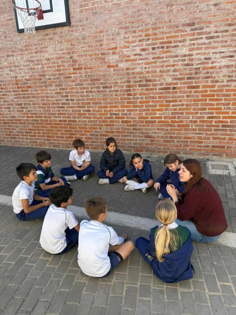 La jornada combinó momentos de reflexión, juego y disfrute compartido. El día comenzó con un ejercicio de respiración y escaneo corporal, que invitó a los estudiantes a llevar la atención plena a distintas partes del cuerpo y a iniciar la mañana con calma y concentración. Posteriormente, se trabajó sobre la importancia de hablarse con amabilidad a uno mismo y a los demás. En este marco, realizaron una actividad en la que cada alumno escribió adjetivos positivos para describir a sus compañeros. Dichas producciones fueron llevadas a sus hogares como un recordatorio de la valoración y el aprecio entre amigos.