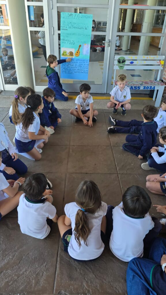 En el marco de la unidad Cómo nos expresamos, y guiados por la línea de indagación “Los relatos permiten conocer las ideas y creencias de los pueblos que los crearon”, los alumnos de Year 3 invitaron a K5 a compartir una jornada especial de aprendizaje. El encuentro tuvo como propósito seguir fortaleciendo el vínculo entre Kinder y Primaria, mientras los estudiantes de Y3 se convirtieron en narradores y guías. Durante la actividad, compartieron información sobre los pueblos originarios, contando dónde vivían, cuáles eran sus costumbres y qué los hacía únicos. Además, relataron leyendas propias de esas culturas, promoviendo el respeto por la diversidad y la valoración de las tradiciones.